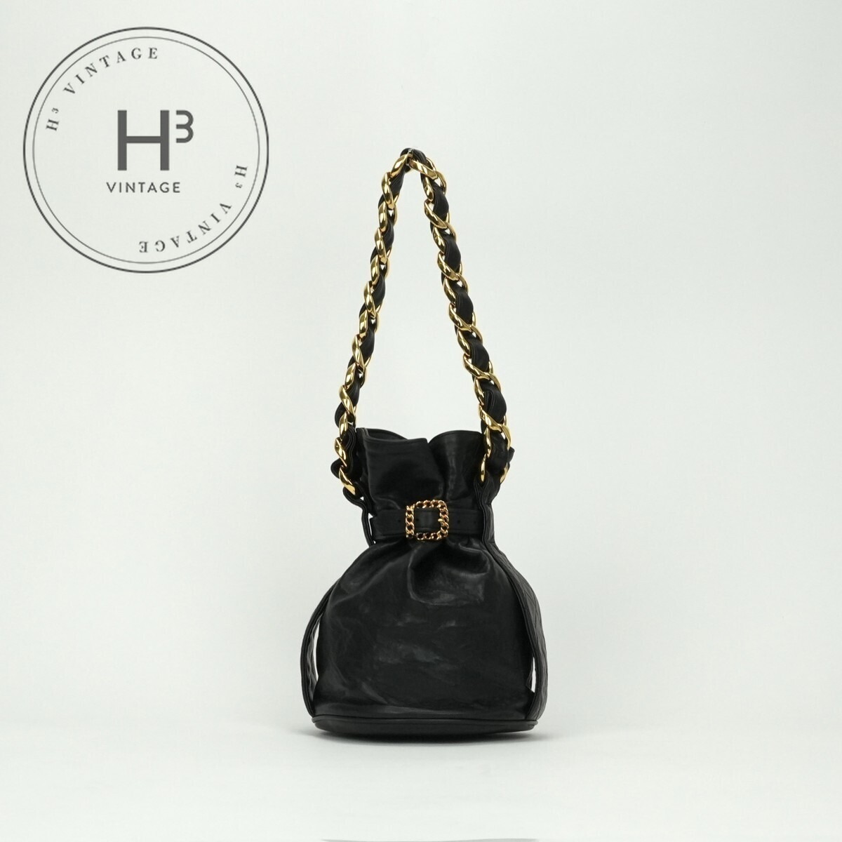 - シャネル CHANEL バッグ ショルダーバッグ ラムスキン ブラック Black 黒 ゴールド金具 巾着 チェーンショルダーバッグ