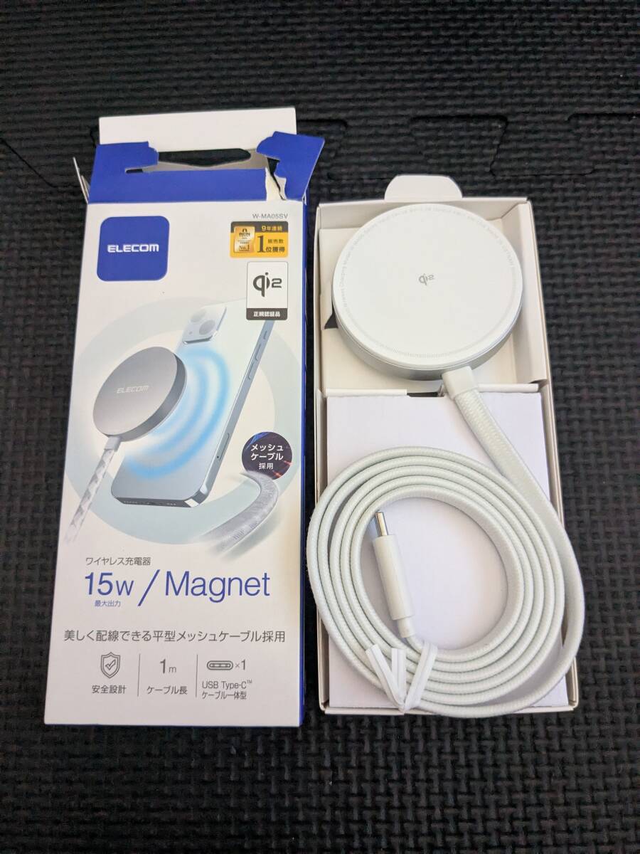 - ◎0710u0929 エレコム Qi2 ワイヤレス充電器 15W マグネット 卓上 メッシュケーブル シルバー W-MA05SV