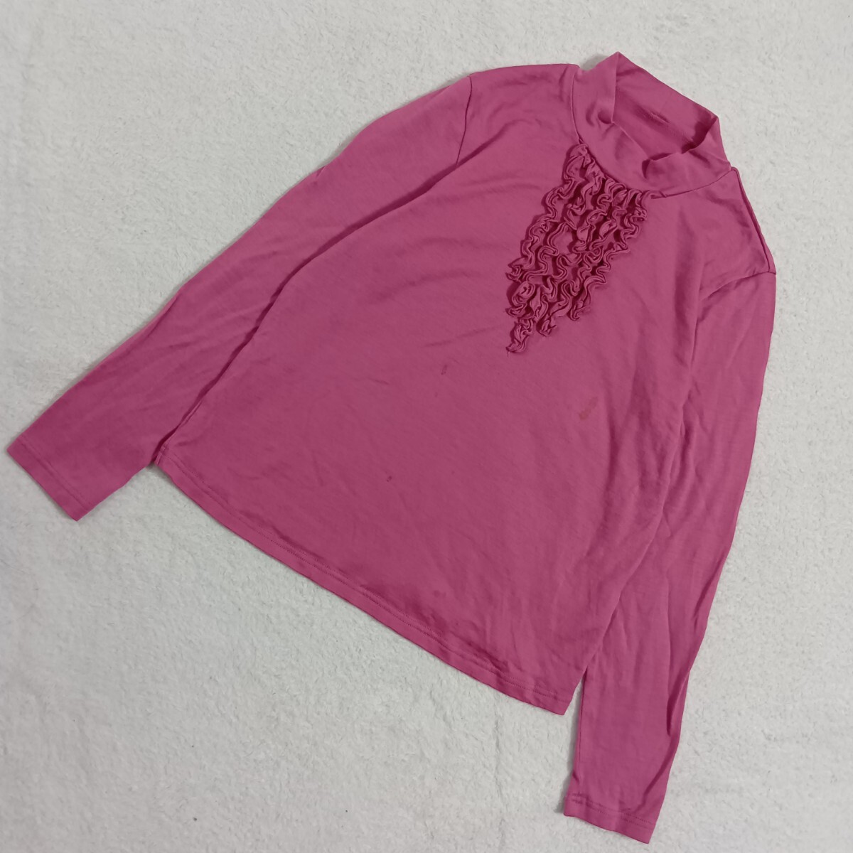 - WOOL FACTORY ウールファクトリー ウォッシャブルウール ハイネック フリル カットソー トップス 樋口繊維工業 ローズ サイズ40 ★1000