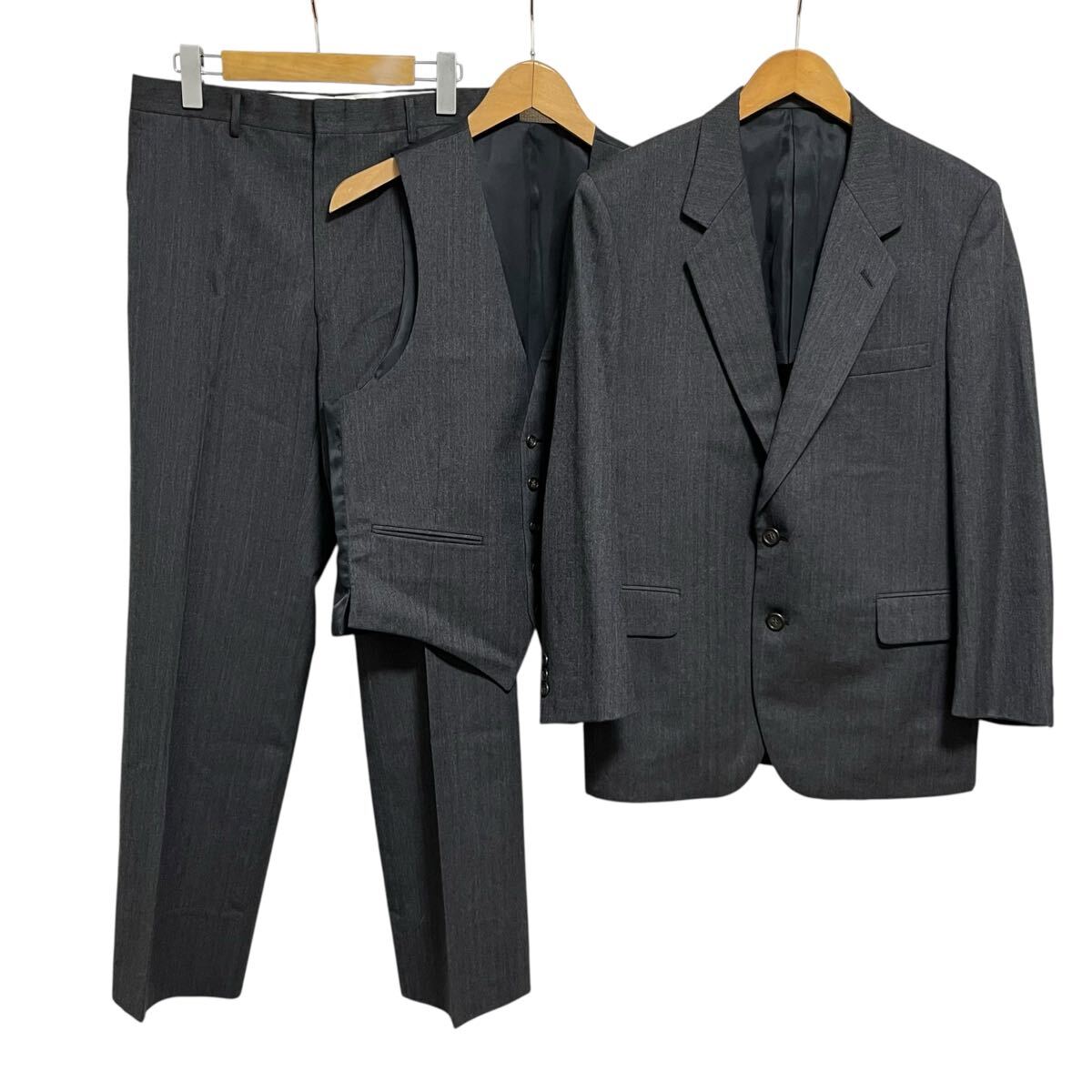 - ※SU2 DO SWING 3ピースセットアップ シングルスーツ グレー ストライプ 2Bジャケット ジレ スラックス ウール100% 日本製 S〜M相当