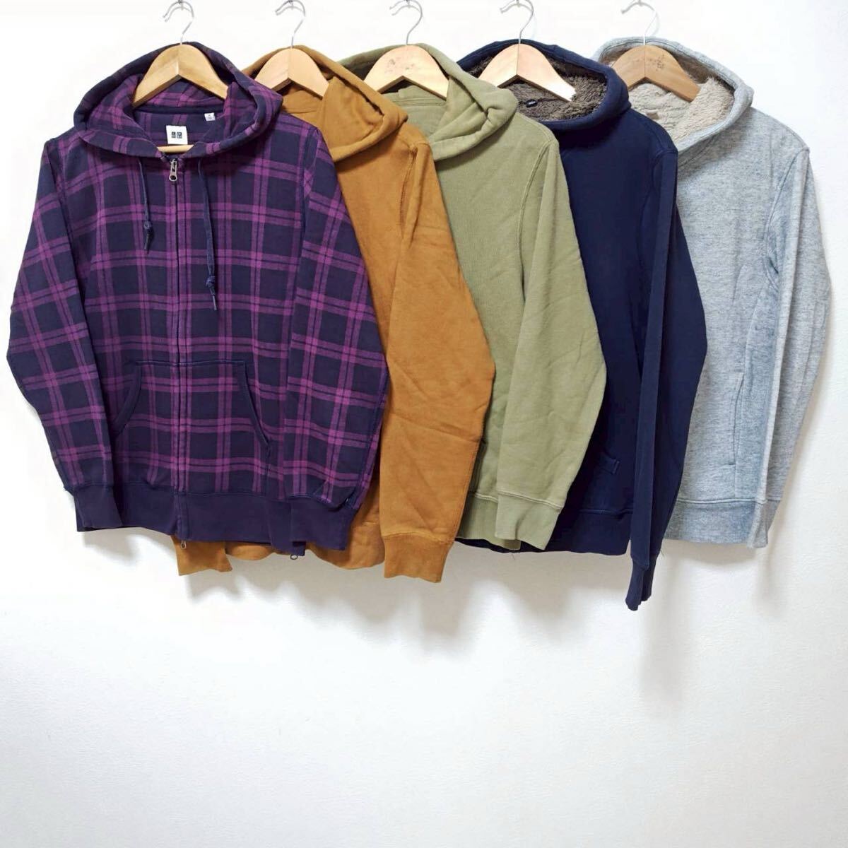 > お得!!【まとめ売り】パーカー 5着 セット スウェット UNIQLO ユニクロ 裏ボア ボアフリース チェック柄 シンプルコーデ 無地 M /SWP-52ji