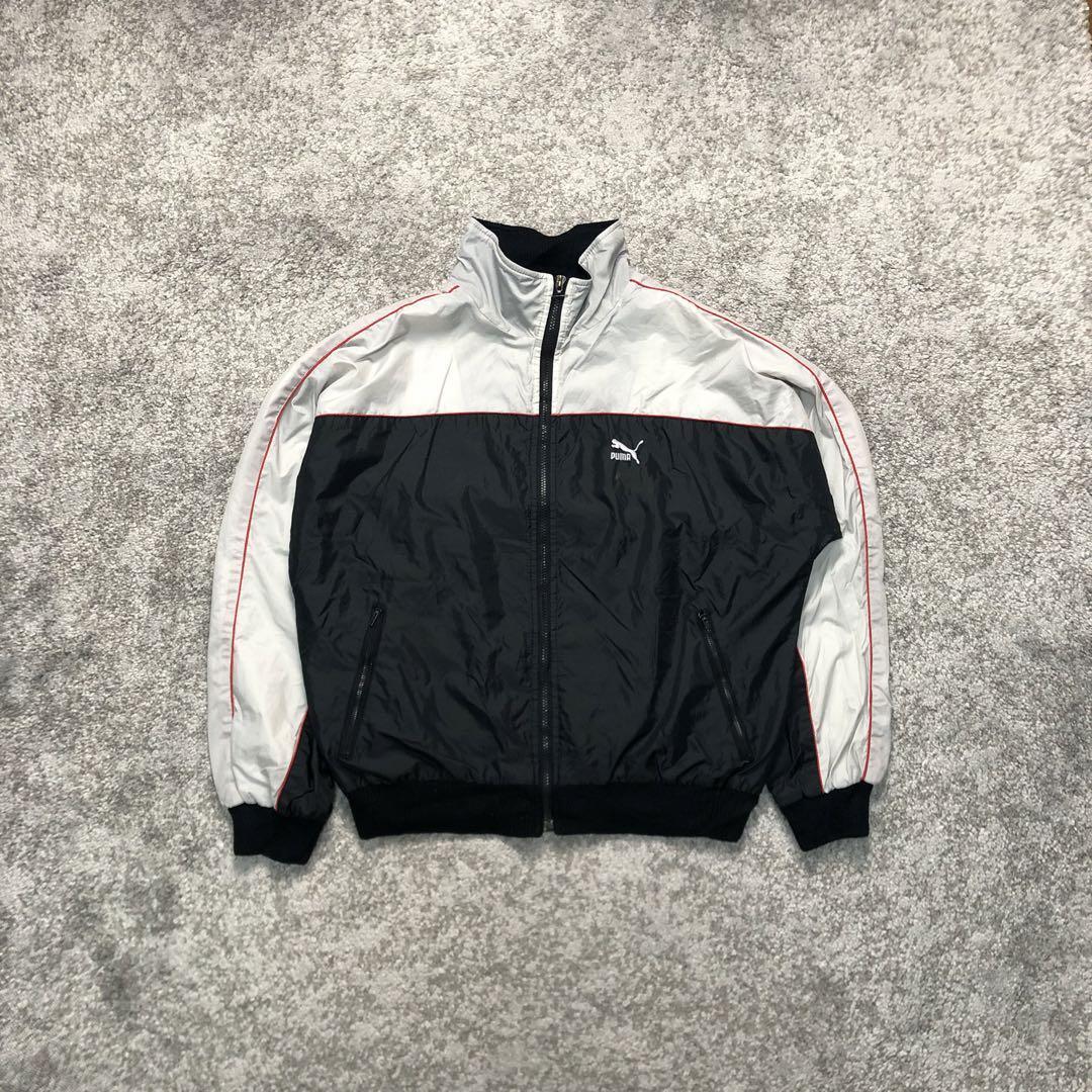 - プーマ ナイロンジャケット 刺繍 黒 グレー Lサイズ