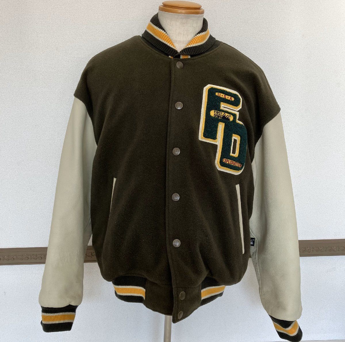 > 1049【 ビンテージ】FIRST DOWN ファーストダウン 袖レザー スタジャン 90s 00s 古着 オールド サイズ L