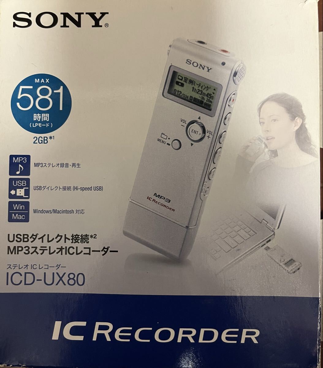 - ★ソニー★ステレオICレコーダー「ICD-UX80」★MP3★再生ファイル形式はMP3/WMAです。容量2GB、最長581時間(LPモード)の録音可能★