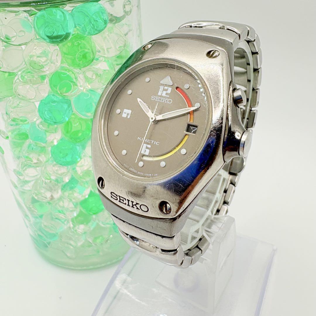 > 稼働 セイコー SEIKO キネティック アナログ ラウンド メンズ 腕時計 アンティーク ヴィンテージ シルバー 希少 レア