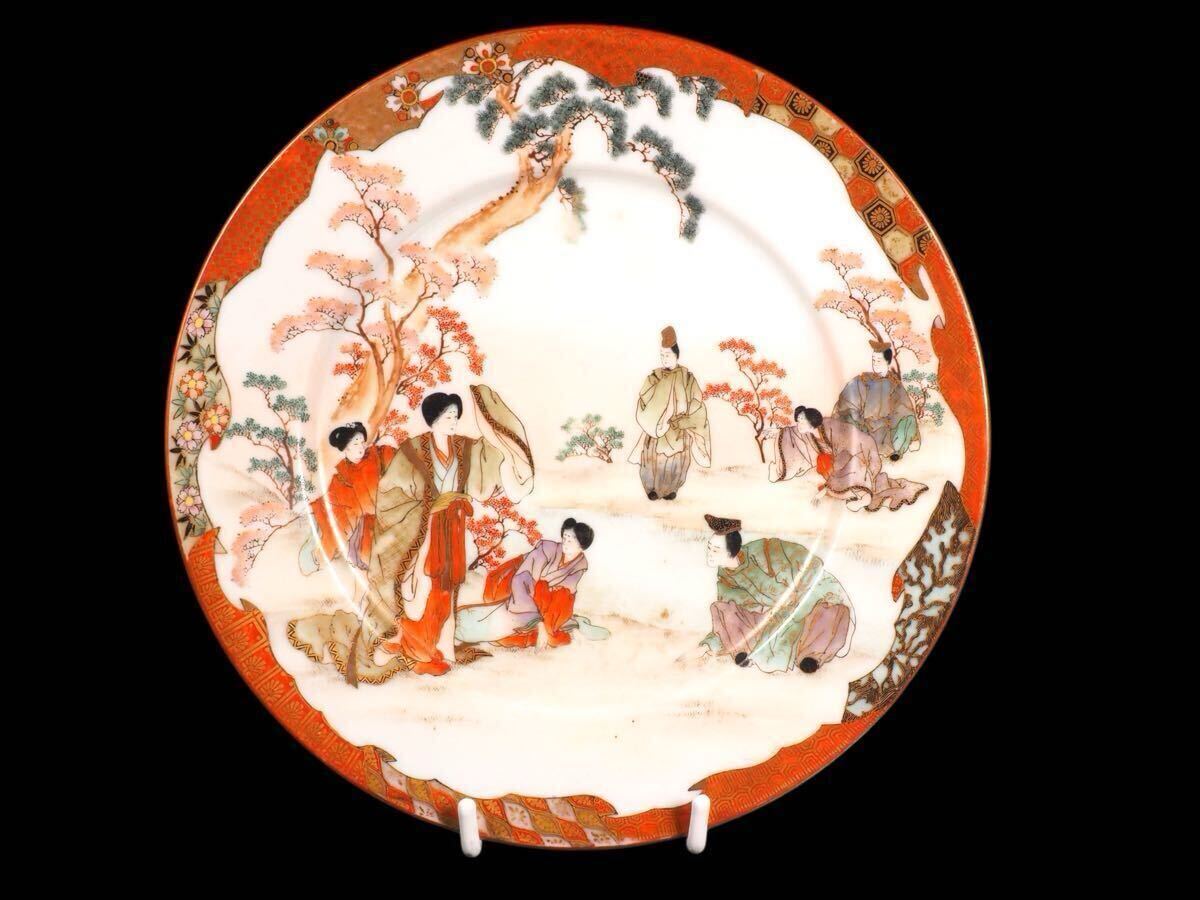 > 明治期九谷最高峰名工 鏑木製絶品飾り皿 まさに凝縮美・極上宮中人物細密絵付画 在銘・本物保証 画工銘も 英国里帰り