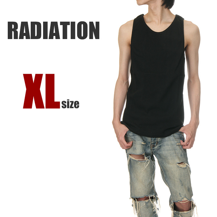 > 【新品】RADIATION タンクトップ XL 黒 メンズ ラディエイション テレコ 厚手 無地 伸縮性 夏 トレーニング フィット おしゃれ 送料無料