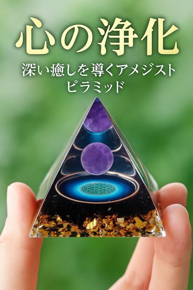 - 心の浄化 深い癒しを導くアメジストピラミッド オルゴナイト ピラミッド クリスタル 浄化 健康 金運 開運 アメジスト