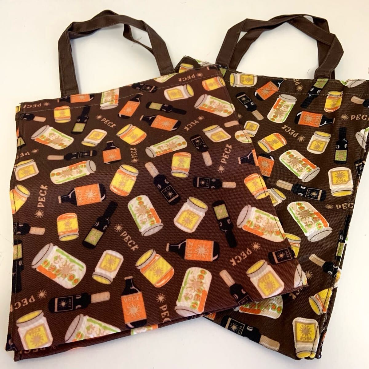 - 未使用 PECK ペック イタリア ミラノ 高級食料品店 高島屋 オリジナル トートバッグ 2点セット 非売品 ブラウン系 かばん エコバッグ