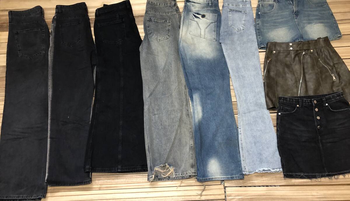 - 福袋韓国風ファッション9点セット デニムパンツ ジーンズ フレア ワイド ブーツカット ダメージ ウォッシュ ミニスカート