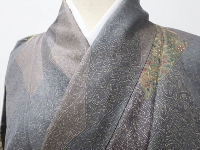 - 《京都一輝堂》リサイクル着物 紬 唐花 正絹 身丈約156.5cm 裄丈62.5cm 25z10-5585