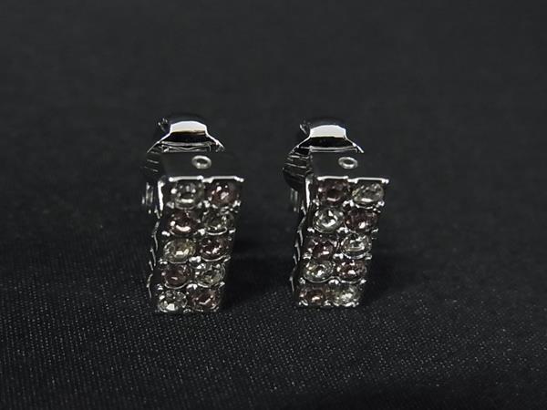 - ■美品■ NINA RICCI ニナリッチ ラインストーン クリップ式 イヤリング アクセサリー シルバー系×ピンク系 DK4654
