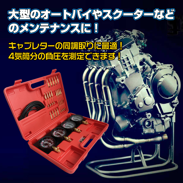 - 【メンテナンス応援セール】車 バイク 4連 バキュームゲージ セット レギュレーター キャブレター シンクロナイザー メーター ee291