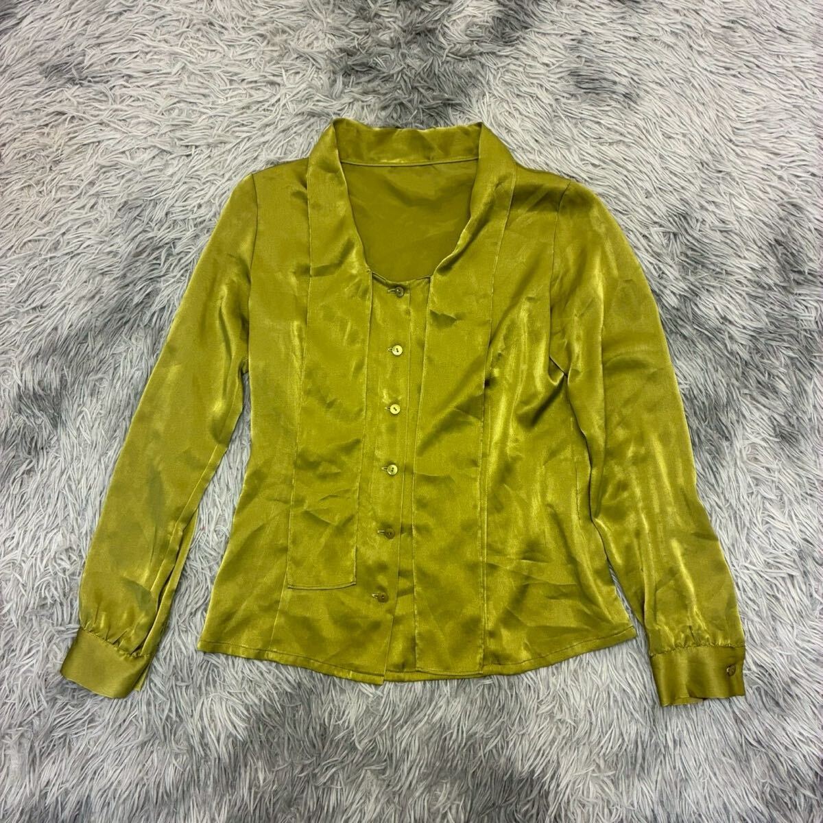 - PROPORTION プロポーション シャツ ブラウス 光沢 長袖 日本製 グリーン サイズ2