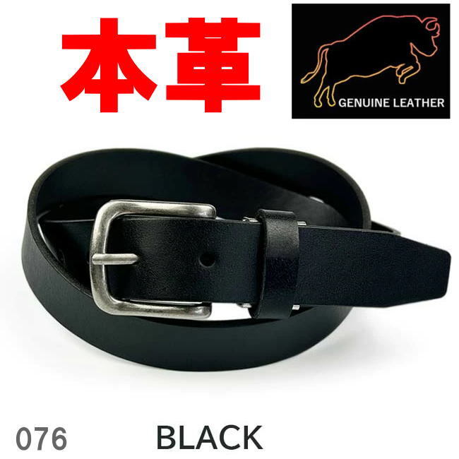 - ブラック ジェニュインレザー 本革 プレーンデザイン ベルト 3cm 076