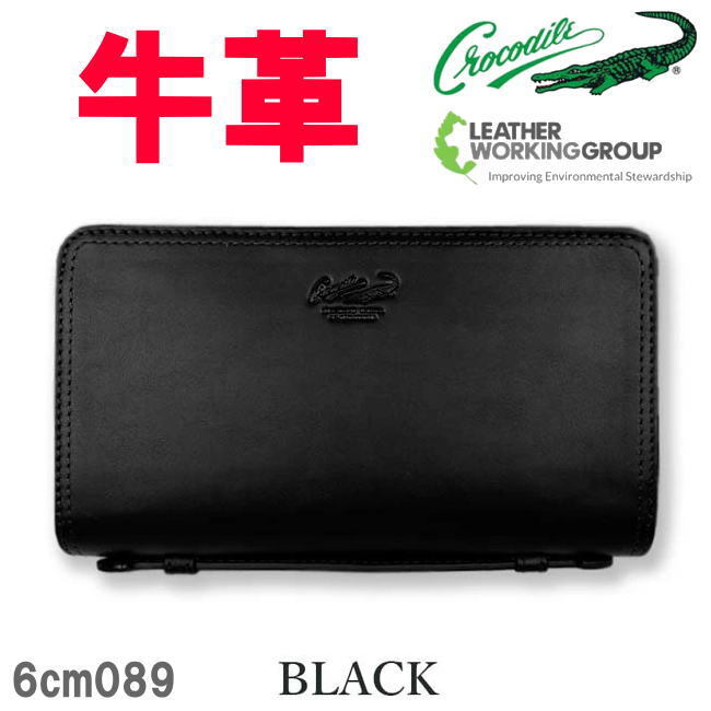 - ブラック 089 クロコダイル 本革 カウレザー ダブル ラウンド 手付 長財布