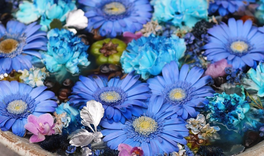 - 送料無料 画像 データ 花手水 ブルー系の花 Flower photo photography