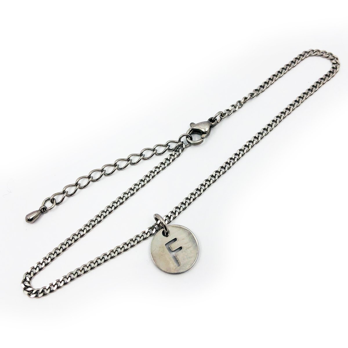 - F イニシャル アルファベット アンクレット ステンレスチェーン 喜平2面カット 幅2.2mm 25cm(21cm+4cmアジャスター)FN213F