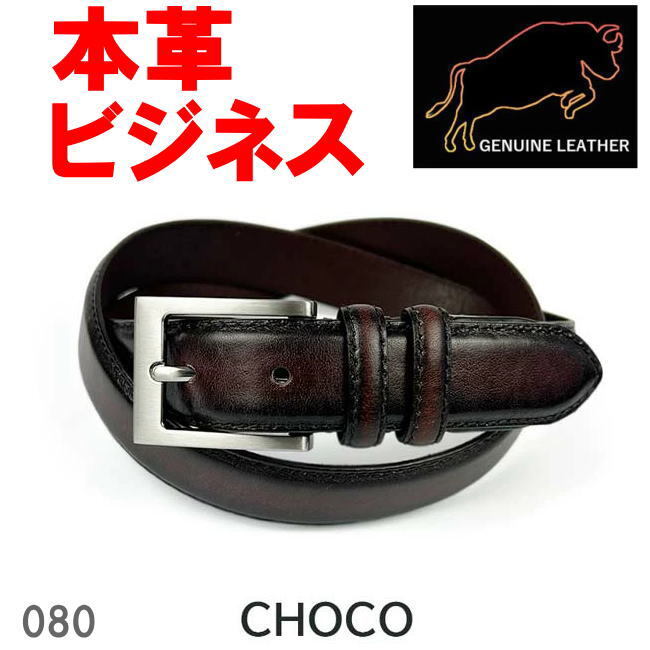 - チョコ ジェニュインレザー 本革 ダブルループビジネス ベルト 3cm 080