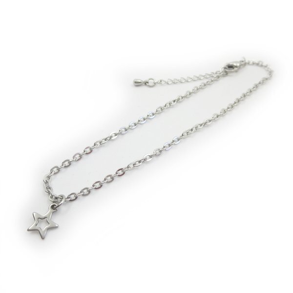 > ステンレスチェーンアンクレット平小豆2.4mm ミニスターチャーム付き 25cm(21cm+4cmアジャスター) FN201