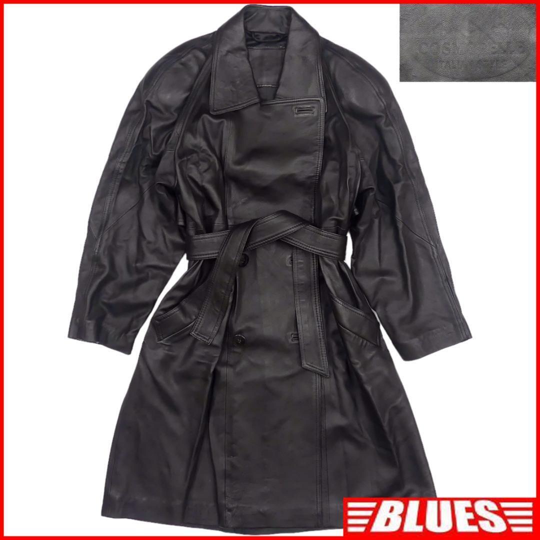 > 即決★トルコ製 COSMOPELLE★メンズL レザートレンチコート 黒 本革 ジャケット 本皮 革ジャン ロングコート ハーフコート カーコート