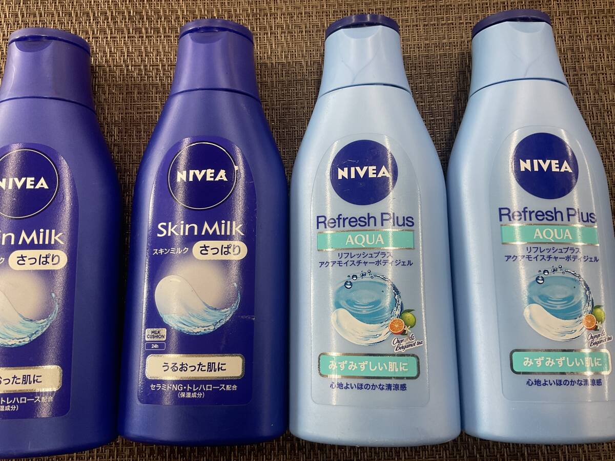 - 花王 ニベア スキンミルク L さっぱりうるおった肌に & アクアモイスチャージェル 保湿液 未使用 4本 セット ボディ用 乳液 乾燥肌 普通肌