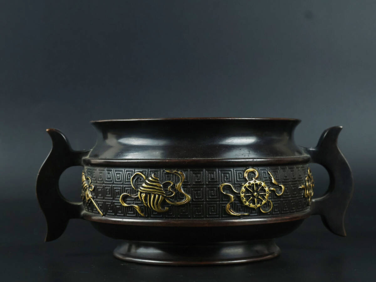 - 『館蔵珍品 紫銅製 塗金 雙耳爐 置物 賞物』稀少珍蔵品 古賞物 貴重物品 収蔵品 中国古美術 時代物 古董品