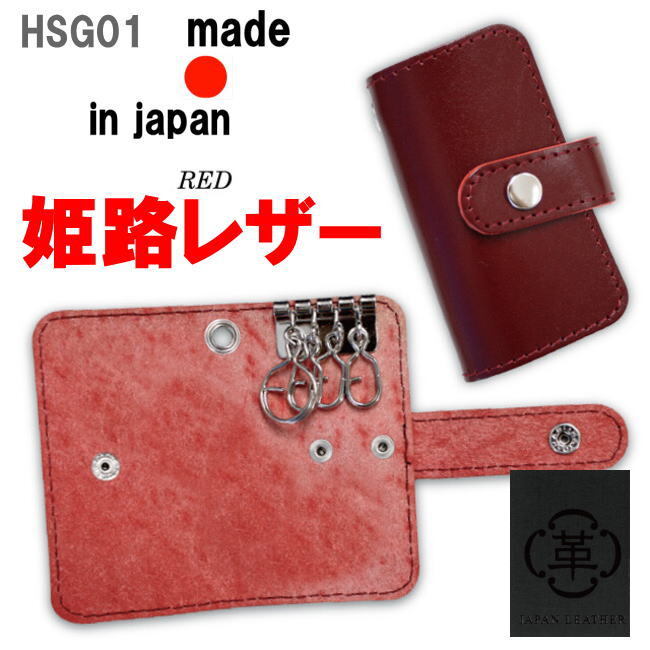 - レッド 姫路レザー 4連キーケース 01 日本製 牛革 メンズ レディース