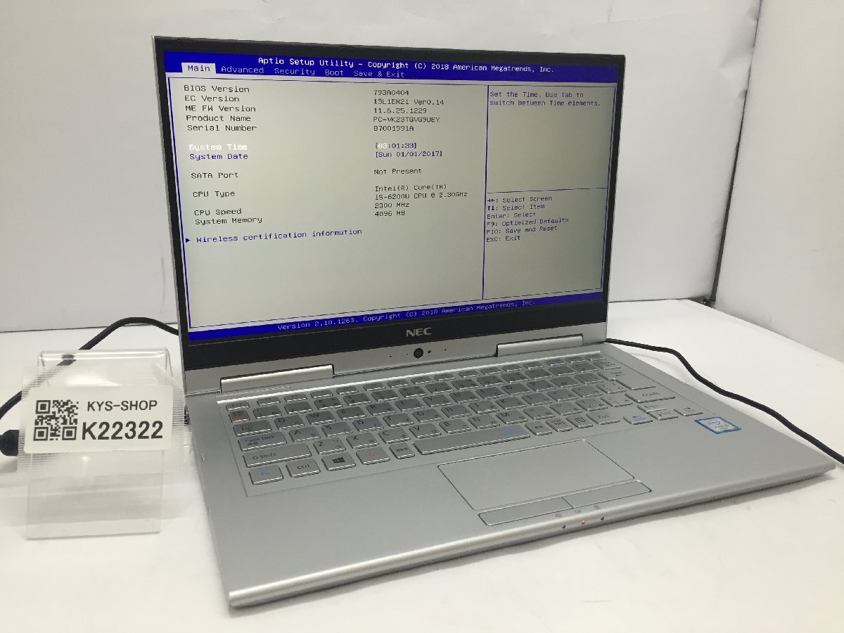 > ジャンク/ NEC PC-VK23TGVG9UEY Intel Core i5-6200U メモリ4.1GB ストレージ無し 【K22322】