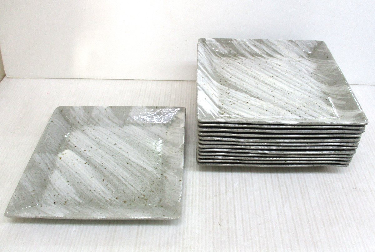 > ★ 101680 角皿 スクエアプレート 13枚 さなえ 美濃焼 石目 刷毛 サイズ22.5x22.5x2.3cm 中古美品 ★