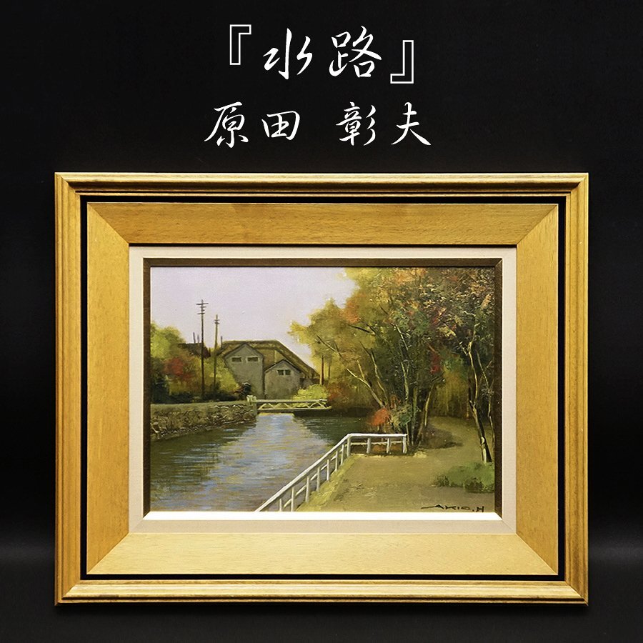 - 原田彰夫『水路(新須摩)』4号 油彩 油絵 原画 直筆 風景画 絵画 額装 美術 芸術 アート 裏書サイン有 古美術品 真作保証品