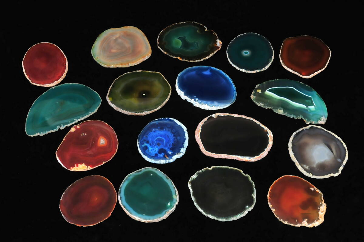 - 瑪瑙 アゲートスライスプレート17点 総重量:2157g メノウ 鑑賞石 鉱石 03409061-1