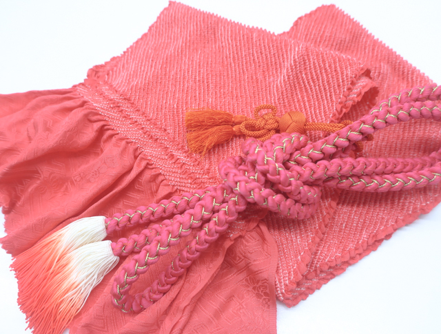 - 《京都一輝堂》【1円~】【着物】 和装小物 帯締め 帯揚げ セット 帯締 帯揚 振袖用 総絞り 金糸 撚り房 飾り付き 24W-2467