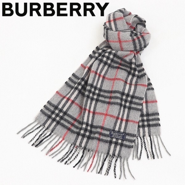 > 【FA764】英国製◆BURBERRYS バーバリー カシミヤ100% ノバチェック柄 マフラー グレー