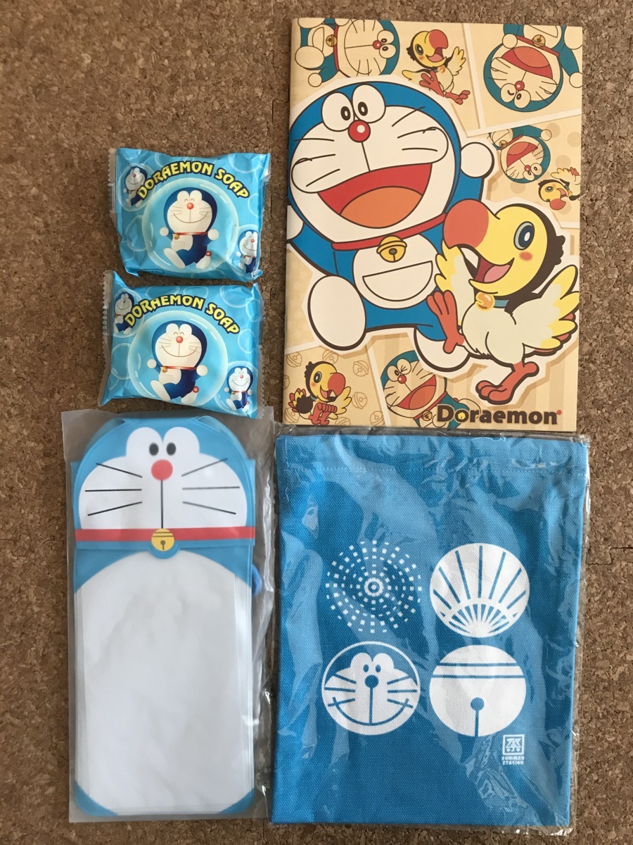 - 【 ドラえもん】 石鹸 方眼ノート( B5 のび太と奇跡の島)/ サマーステグッツ・ 防水ケース・ 巾着(18×24cm) 4種5点 送料無料