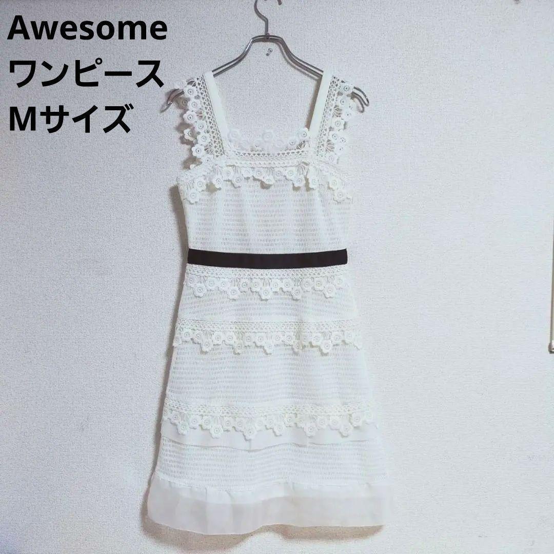 - Awesome ノースリーブワンピース 白 M レース 清楚 爽やか 上品 春夏