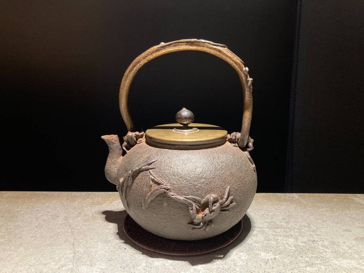 - ■古作 日本亀文 蟹楼閣 銀象嵌 平丸形 鉄瓶■h煎茶 急須 湯沸かし 鉄壺 鉄器 金属工芸 茶道具 時代物 古美術_