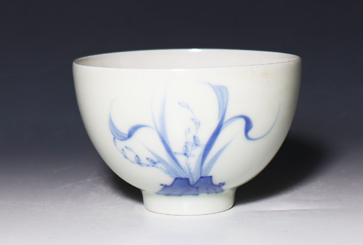 - 【桃】酒器ぐい呑み:後期鍋島染付蘭の図猪口