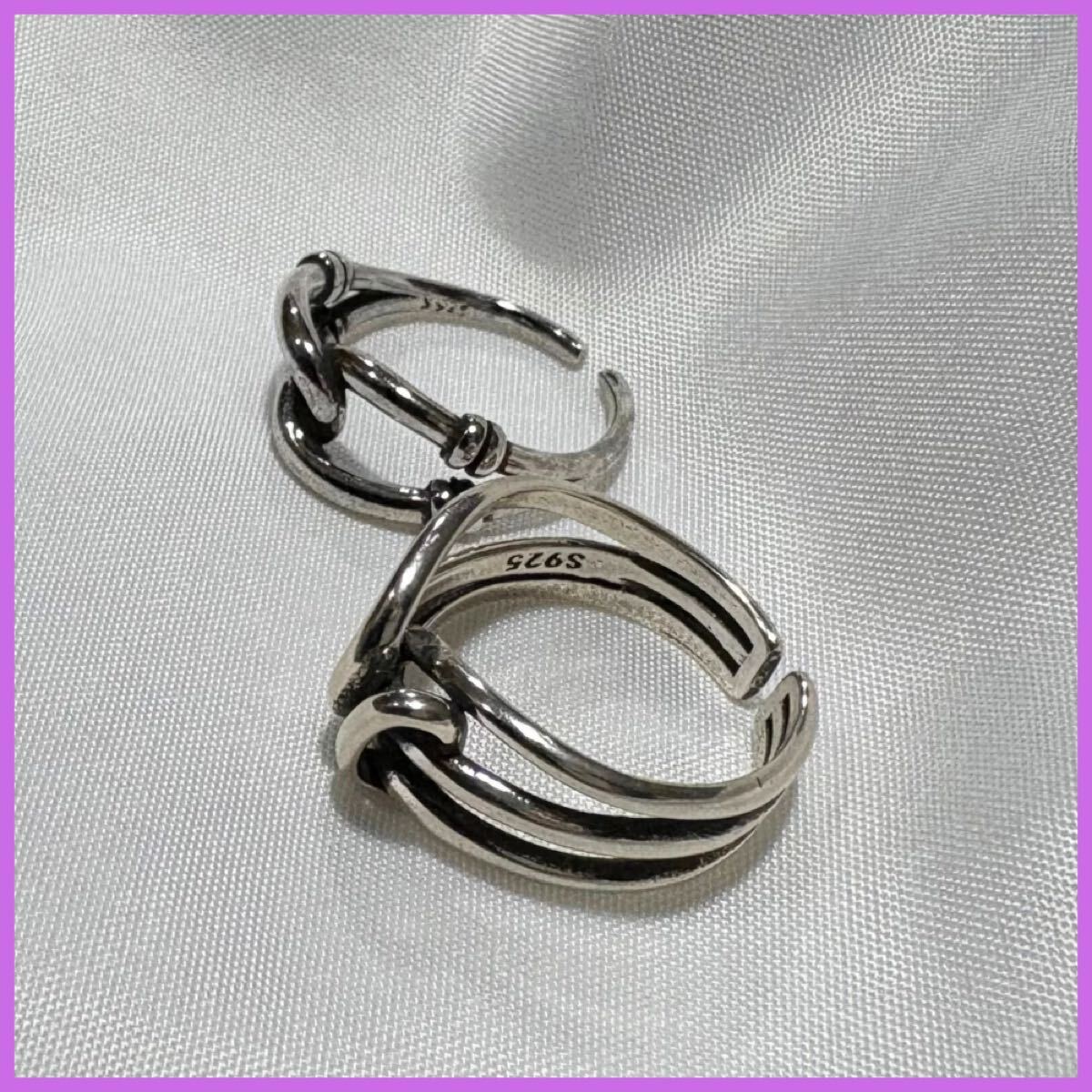 - リングセット メンズ シルバー チェーン レイヤード 2個 ヴィンテージ 指輪 インディアン プレゼント 男女兼用 フリーサイズ