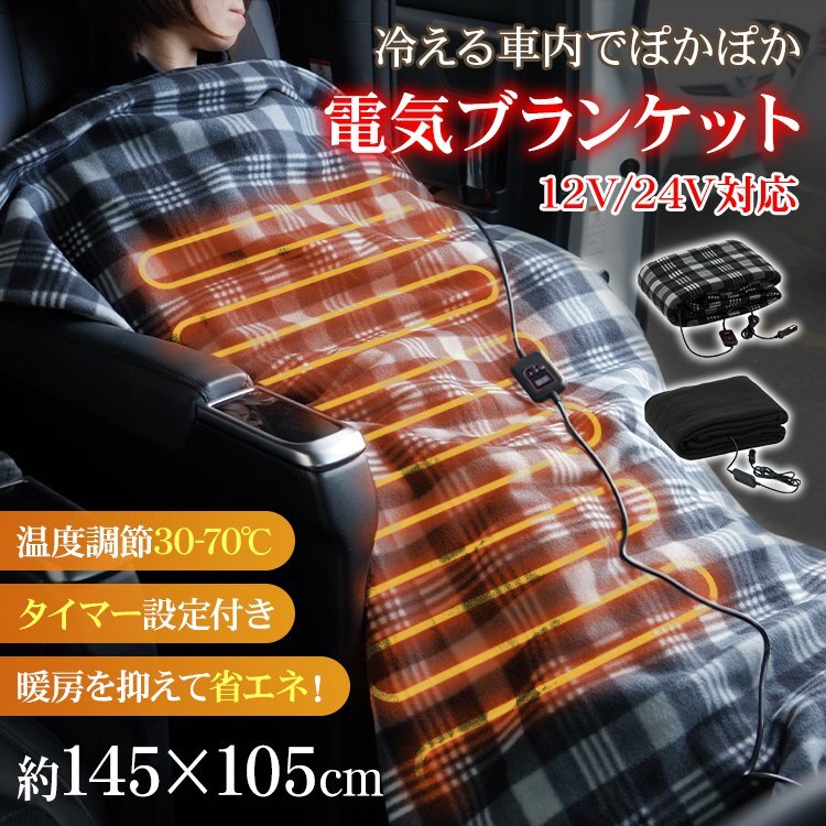 - 送料無料 電気毛布 掛け毛布 ひざ掛け 車用 電気ブランケット 毛布 速暖 温度調節 シガーソケット 12V 24V 電熱ヒーター 暖かい cc011