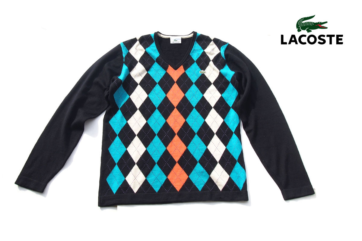 > 送料無料★【中古】ラコステ|LACOSTE|アーガイル柄 Vネックウールセーター|メンズウェア|3|訳アリ