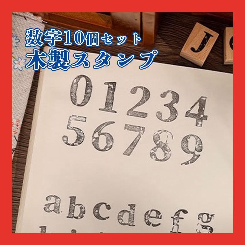 - ハンコ 木製 レトロ 数字 スタンプ コラージュ10種類 アンティーク 手帳