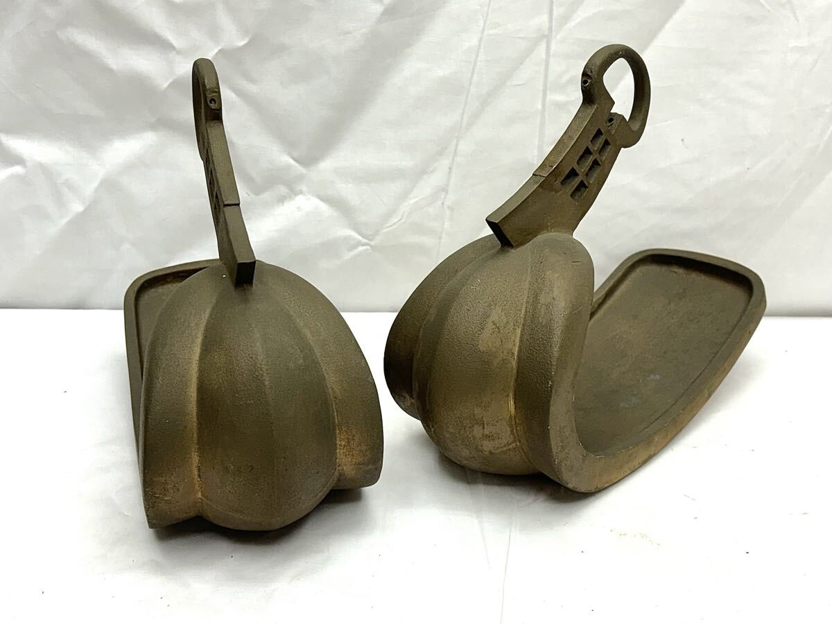 - 1円〜 馬具 鎧 古道具 武具 壺鎧 壷鎧 時代物 骨董 乗馬 あぶみ アンティーク 置物 希少 金属工芸 レトロ 重量約8.0kg 2点セット まとめて