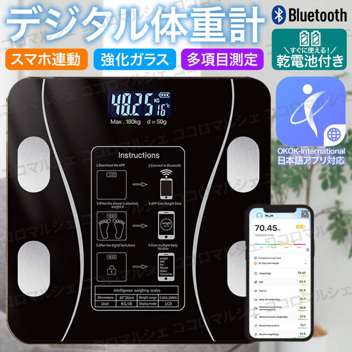 - 体重計 スマホ連動 電池式 Bluetooth 体脂肪計 デジタル ヘルスメーター 体脂肪率 体組成計 内臓脂肪 健康 ダイエット 減量 ブラック 黒