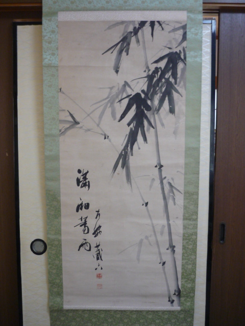 - 【模写】 掛け軸 小林蔵六 竹の図 紙本 大きさ全体約190cmx65cm 紙本部分約122cmx52cm 合わせ箱あり