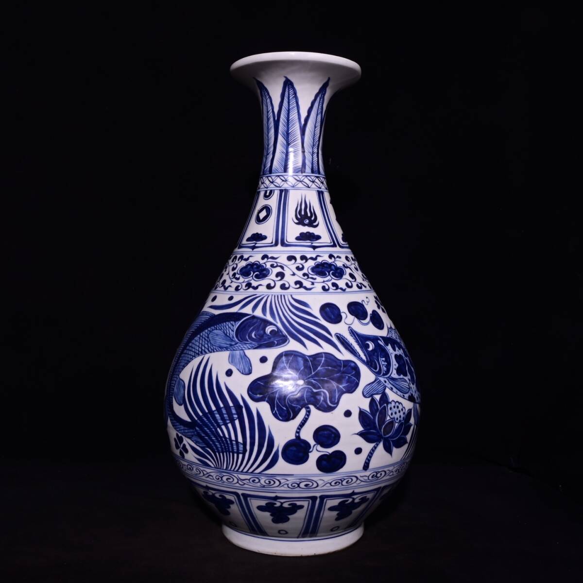 - AUL0564 人間国宝 古磁器 白磁【元白滸孤窯款鯖藻紋玉壺春瓶】 工芸品 陶芸 磁器 置物 收藏品 時代物 中国美術