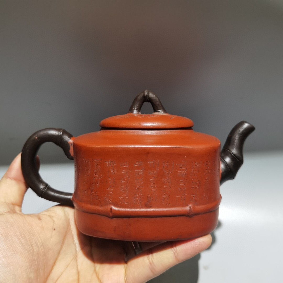 > ▽鴻▽ 紫砂壺 四方心經壺 顧景舟款 紅泥 紫砂壺 茶具 茶道品 酒壺 急須 古賞物 古董品 時代物 稀少珍品 中国古玩 中国古美術