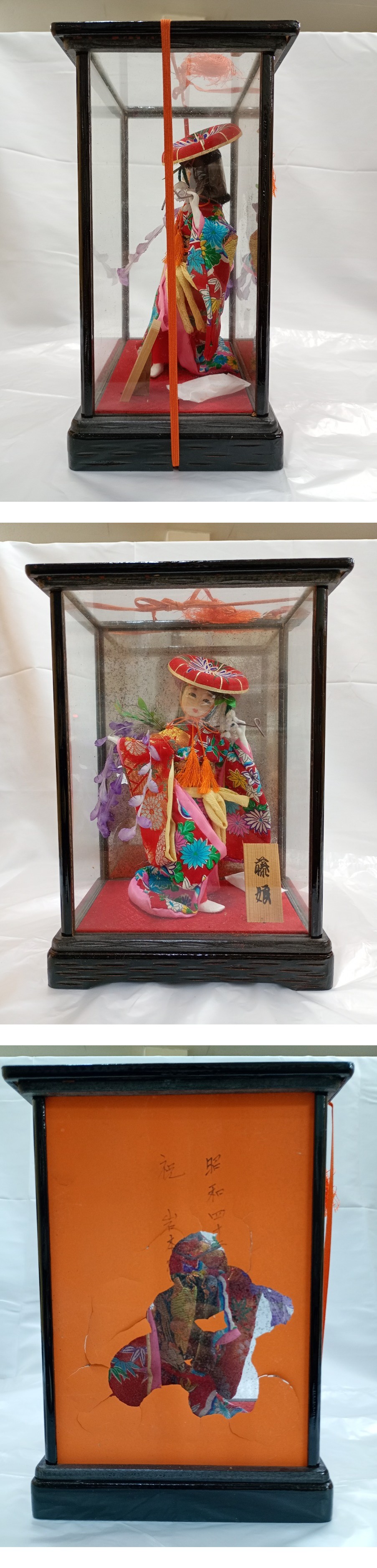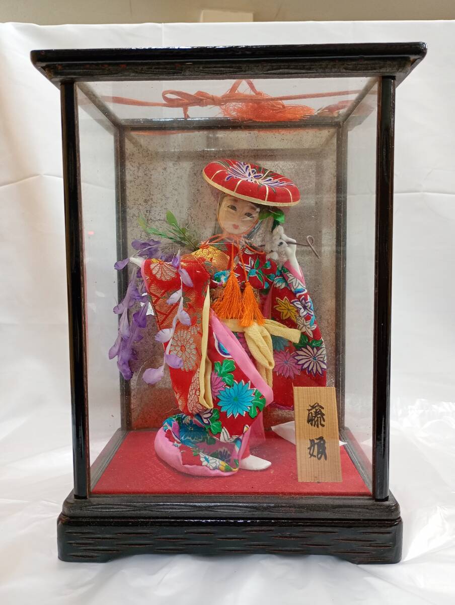 - ★日本人形 藤娘★ 伝統品 美術 コレクション ガラスケース アンティーク 置物 インテリア 中古現状品