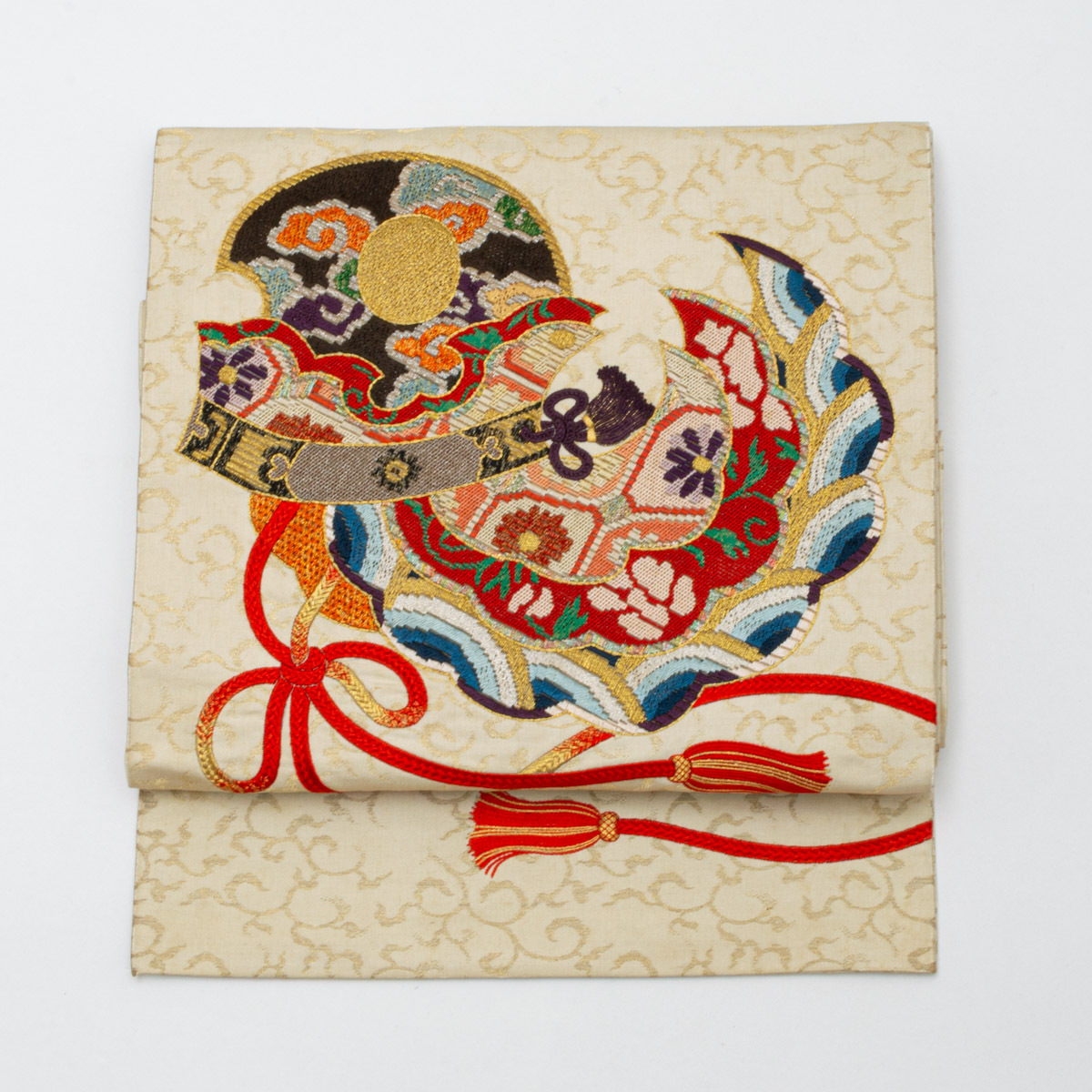 - 【ヴィンテージ品】袋帯 絽刺し 刺繍 鳥兜 とりかぶと 文様 正絹