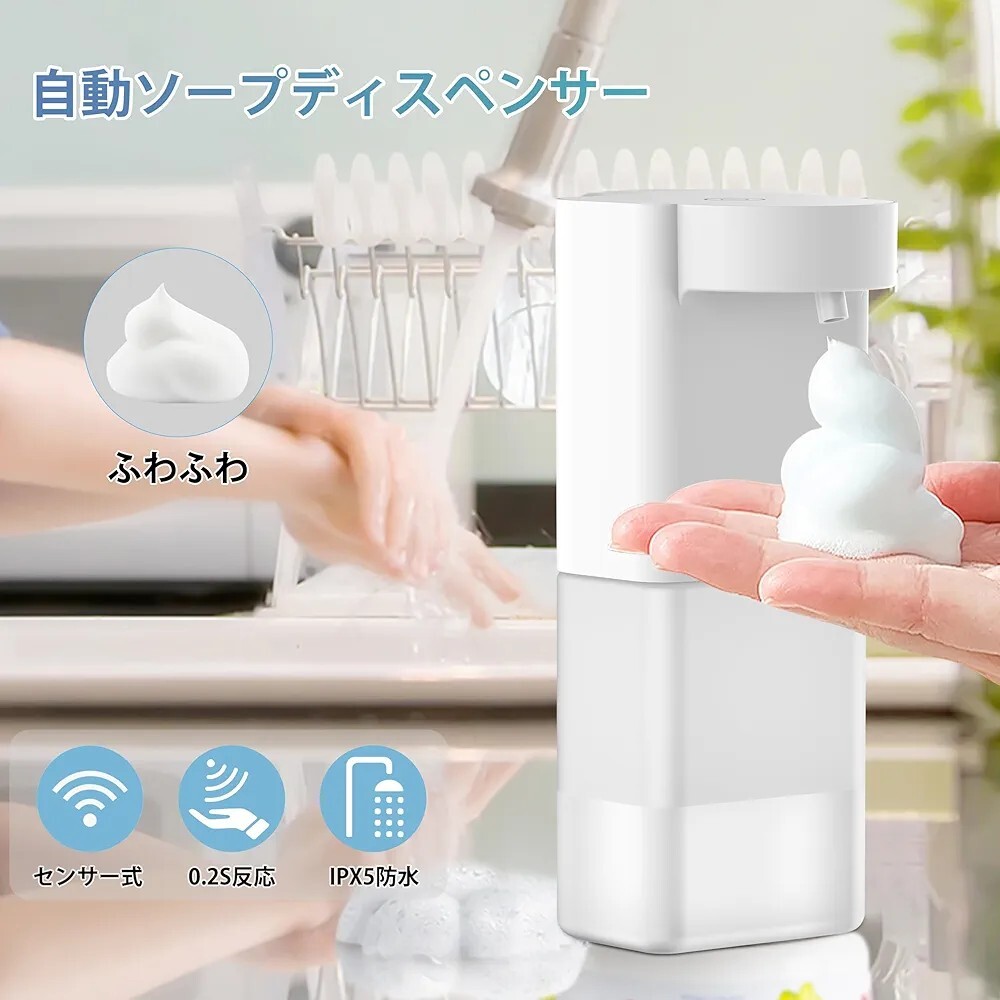 > ソープディスペンサー 小型 泡 自動 吐出量3段階調 壁掛け オートディスペンサー 充電式 IPX5防水 gogorelax 新品